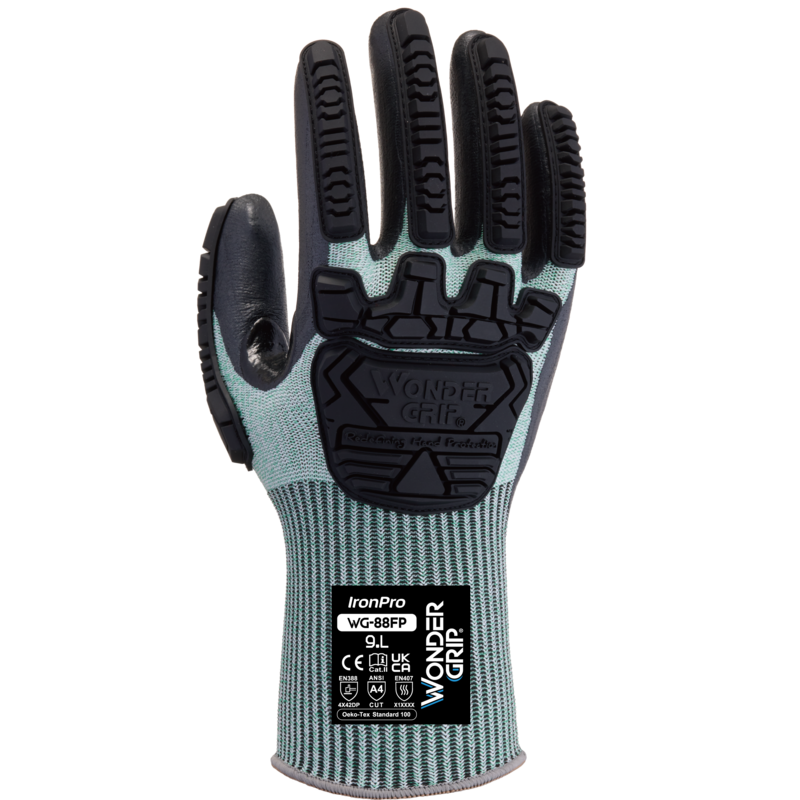 Der Wonder Grip® WG-88FP IronPro vereint fortschrittlichen Schnittschutz, Aufprallschutz und ergonomische Leistung mit der bewährten Griffigkeit von Wonder Grip®. Die ideale Wahl für Profis, die in anspruchsvollen Arbeitsumgebungen auf innovative Hand- und Fingersicherheit setzen.