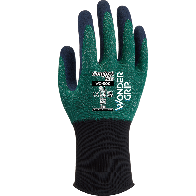 The Wonder Grip® WG-300 Comfort Lite is our high-quality entry-level product for the latex range. With a single latex coating on a 15-gauge nylon and polyester base, WG-300 Comfort Lite offers great elasticity making hand movements easier, and increasing the dexterity needed when performing precise tasks.