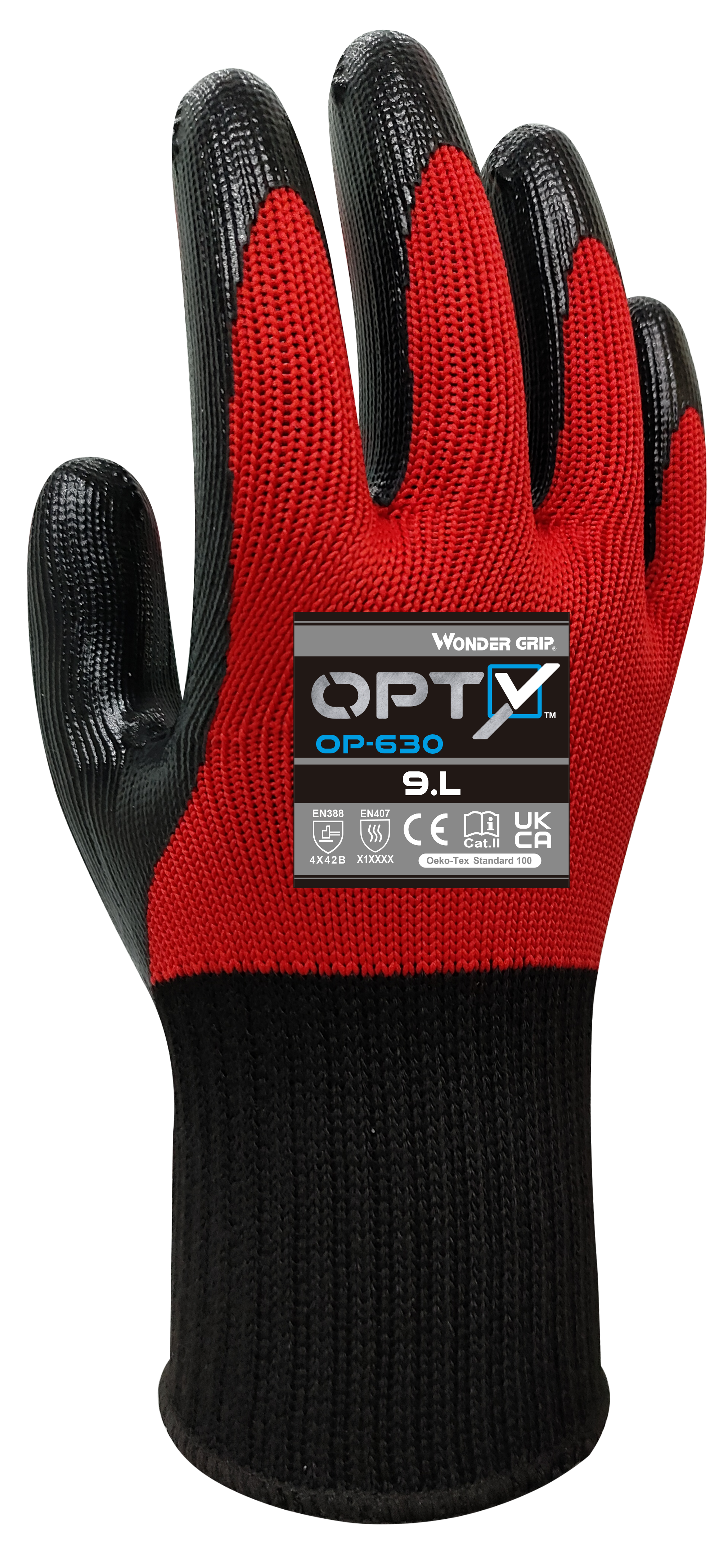 The Wonder Grip® OP-630 Opty™ is a robust, palm-coated nitrile glove engineered for heavy-duty industrial use. Its tough nitrile coating ensures excellent grip and full protection against oils, even in slick conditions. Offering high abrasion resistance and ISO 13997 Level B cut protection, it enhances safety and performance in the most demanding work environments.