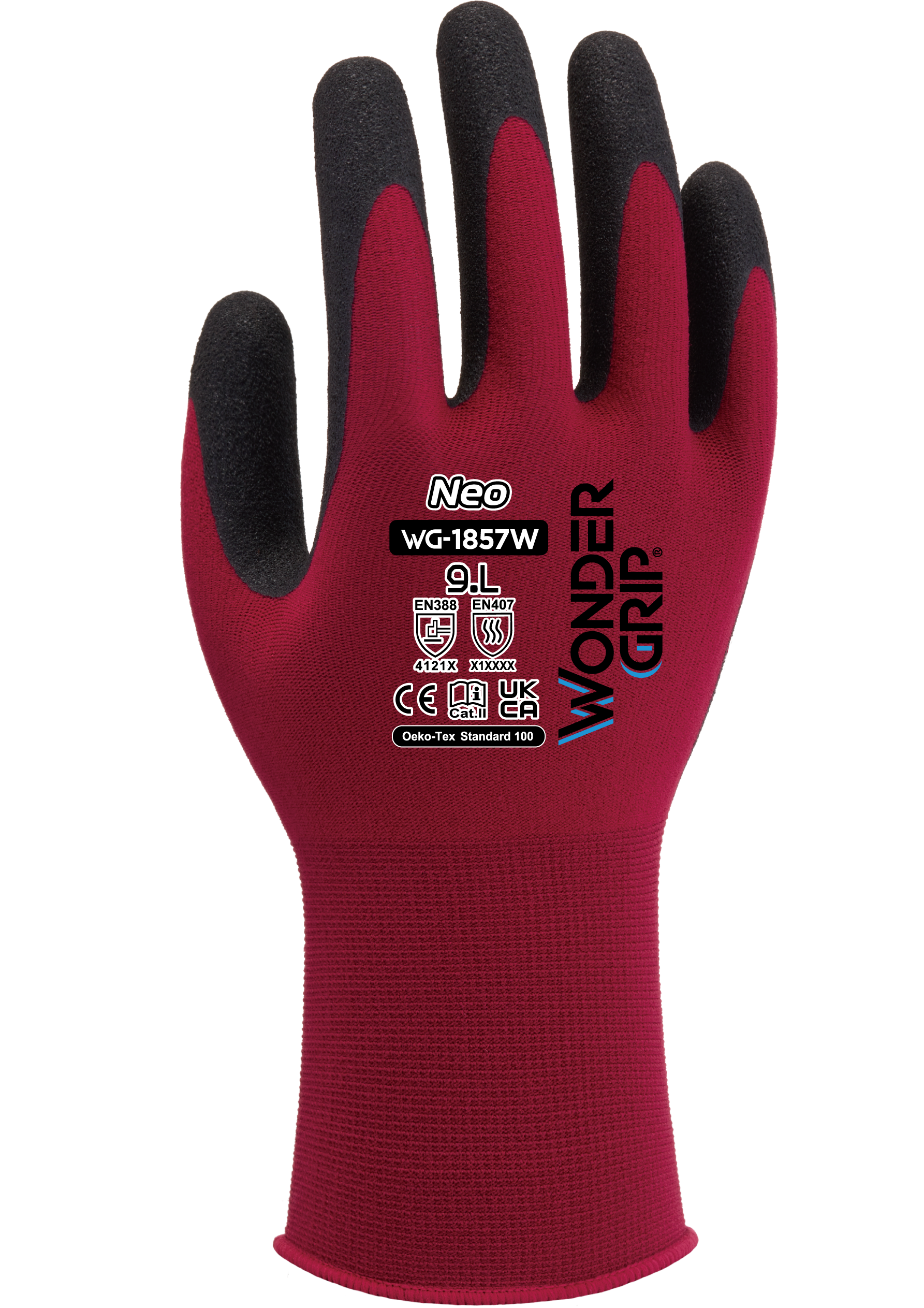 The Wonder Grip® WG-1857W Neo is a single nitrile coated glove, constructed on an 18-gauge extra fine nylon and spandex liner. Thanks to Wonder Grip Technology™, the nitrile coating provides users grip and resistance in dry and slightly oily environments.