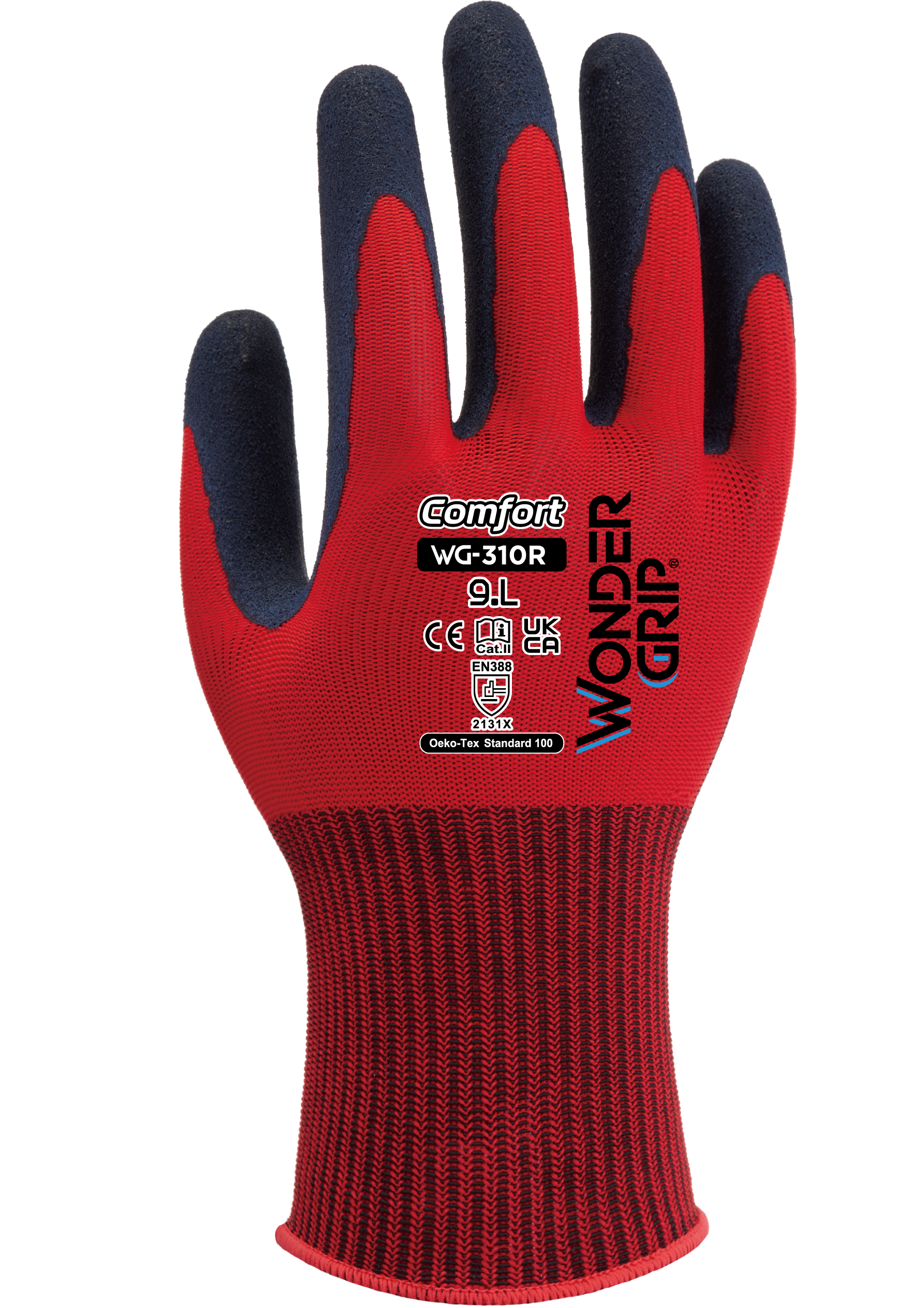 The Wonder Grip® WG-310R Comfort is a glove with a double latex coating constructed on a 13-gauge polyester liner. Thanks to Wonder Grip Technology™, the coating provides users grip and resistance in dry and slightly wet environments.