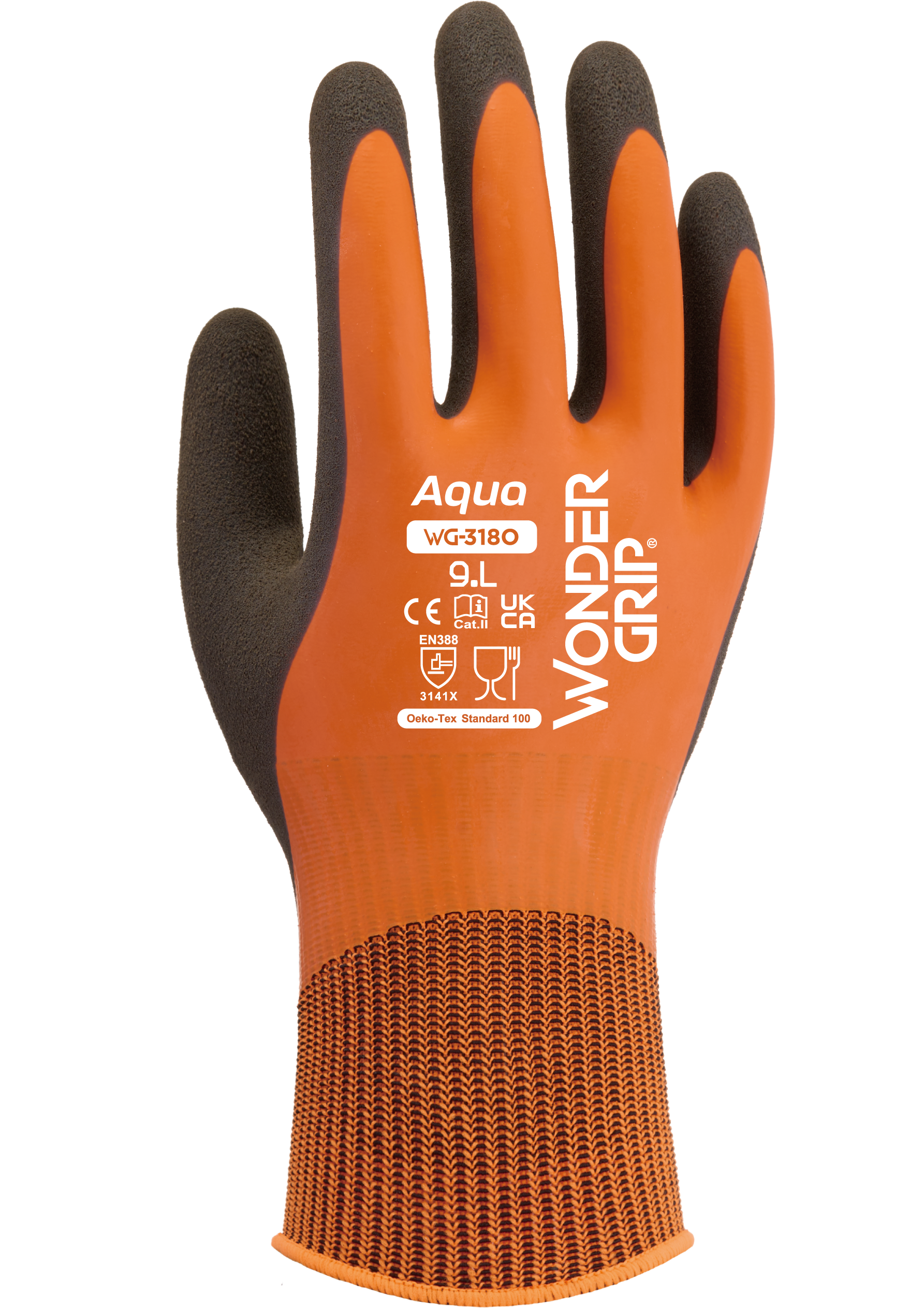 WG-318O Aqua on kaksinkertaisella lateksipinnoitteella kokonaan päällystetty käsine, ja se on valmistettu 13-g-neuletiheyden nailonvuorin päälle. Wonder Grip Technology™ -ratkaisun ansiosta pinnoitus tarjoaa paremman otteen ja voiman kuivissa tai märissä olosuhteissa.