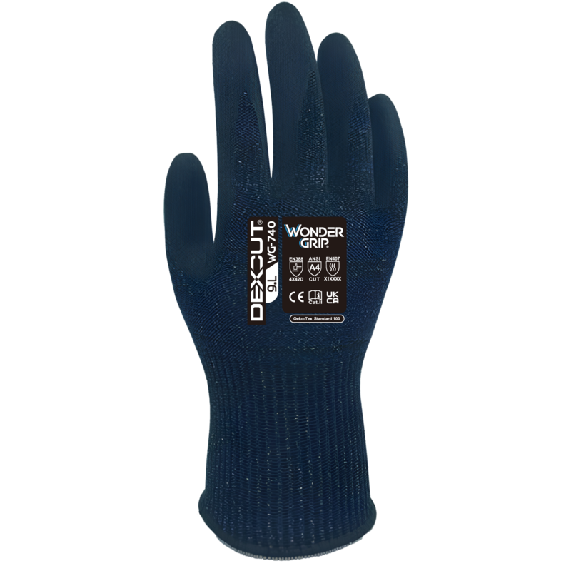 Il Wonder Grip® WG-740 Dexcut® combina la nostra caratteristica flessibilità, destrezza e presa offrendo al contempo un'eccellente resistenza al taglio (ISO 13997 livello D e ANSI/ISEA 105 livello A4). Sviluppato utilizzando la nostra esclusiva miscela ad alte prestazioni di nylon rinforzato e fibra minerale, il WG-740 Dexcut® è il guanto ideale per tutte le applicazioni che richiedono una protezione al taglio di livello medio-alto in ambienti asciutti, umidi e oleosi.
