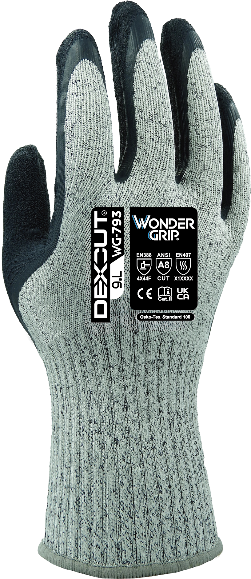 ワンダーグリップ® WG-793 DEXCUT® は、切り傷、裂傷、刺し傷に対する最高レベルの保護を提供することを目的として、細心の注意を払って選択された耐切創性の高い繊維の組み合わせを使用して開発されています。