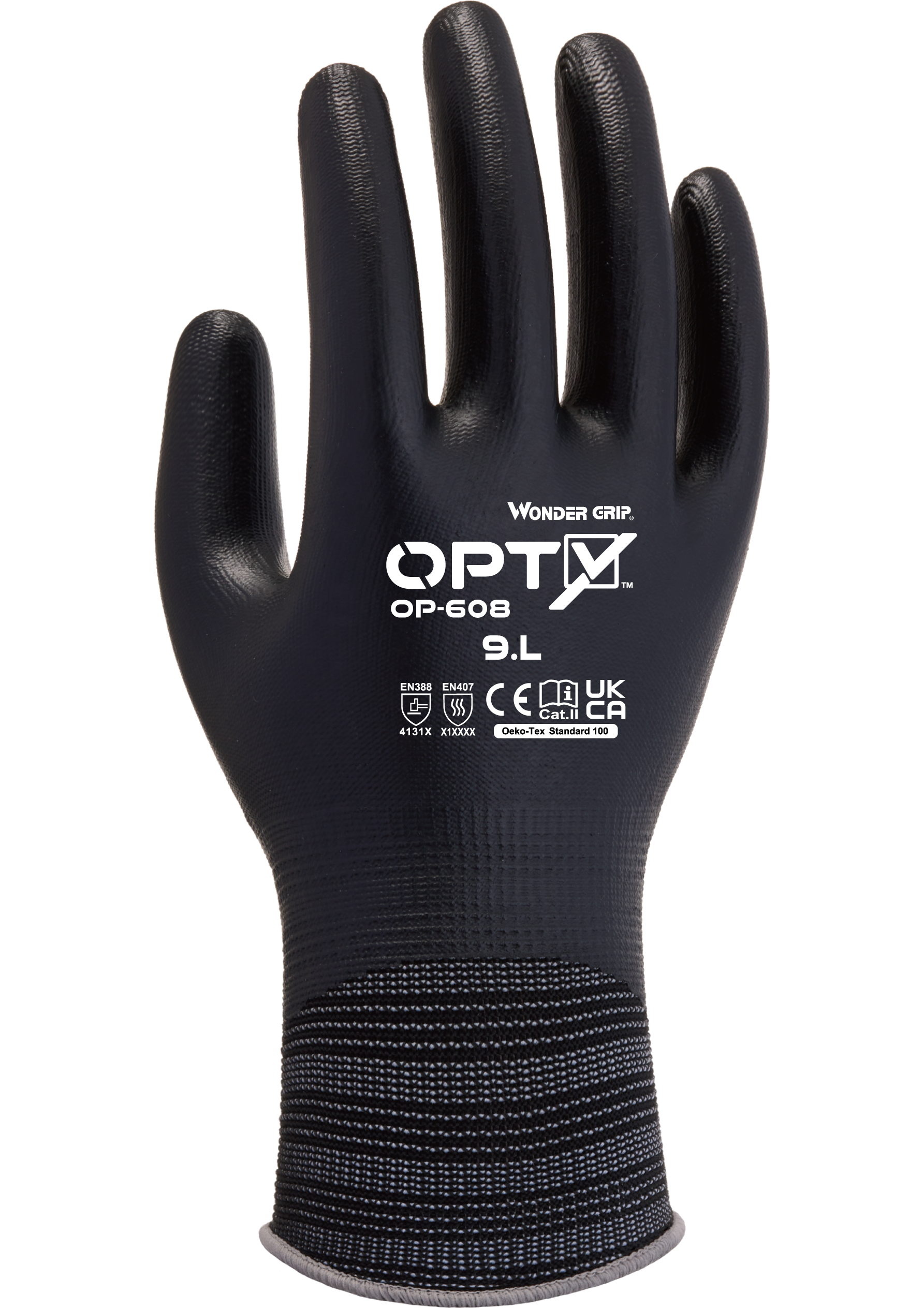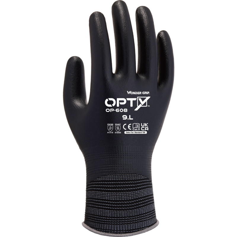 De Wonder Grip® OP-608 Opty™ is een volledig gecoate nitrilhandschoen, met een 13-gauge polyester liner. De nitrilcoating zorgt voor uitzonderlijke grip in droge tot natte omgevingen en biedt tegelijkertijd duurzaamheid en hoge slijtvastheid. De OP-608 Opty™ profiteert van de Wonder Grip® TPDT™-technologie, waardoor de drager bewegingsvrijheid en de verhoogde gevoeligheid krijgt die Wonder Grip® zijn internationale reputatie heeft opgeleverd.