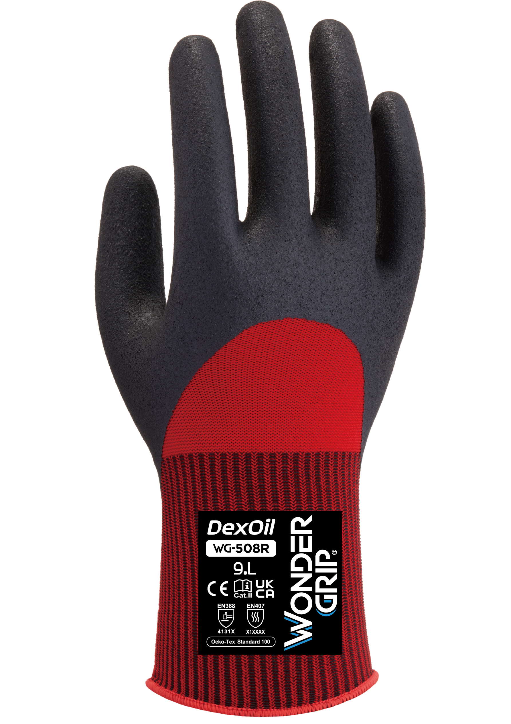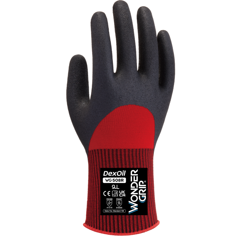 Wonder Grip® WG-508R DexOil är en supertunn handske med ¾ nitrilbeläggning på ovansidan, på en superelastisk 13-gauge liner. WG-508R har nytta av Wonder Grip Technology™ (beläggning av mikronitrilskum) som ger ett exceptionellt grepp, komfort och skydd mot olja.